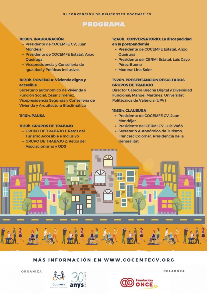 La Confederación de Personas con Discapacidad Física y Orgánica de la Comunitat Valenciana, COCEMFE CV, organiza la XI Convención de Dirigentes de ONG de Discapacidad bajo el lema LÍDERES PARA TIEMPOS DE INCLUSIÓN
